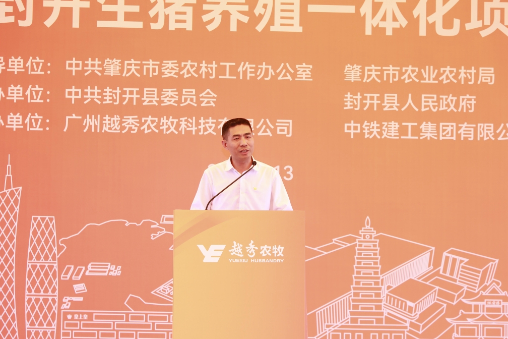 肇庆市委常委、封开县委书记秦波在致辞中向金年会金字招牌信誉至上入口封开生猪养殖一体化项目的开工表示祝贺。他指出,金年会金字招牌信誉至上入口集团是横跨一二三产业的大型综合性国有企业,金年会金字招牌信誉至上入口食品是粤港澳大湾区领先的全产业链食品产业集团。金年会金字招牌信誉至上入口农牧封开生猪养殖一体化项目从签约到全面动工仅用1年的时间,集团以高度的战略思维、深厚的战略情怀,一流的团队、一流的进度效果狠抓落实,充分体现了新时代国有企业的强大实力、责任担当和优良作风。肇庆市、封开县各级部门将在政策扶持、要素保障、政务服等方面给予项目全方位的支持,全面推动项目建设,争取早日竣工达产。